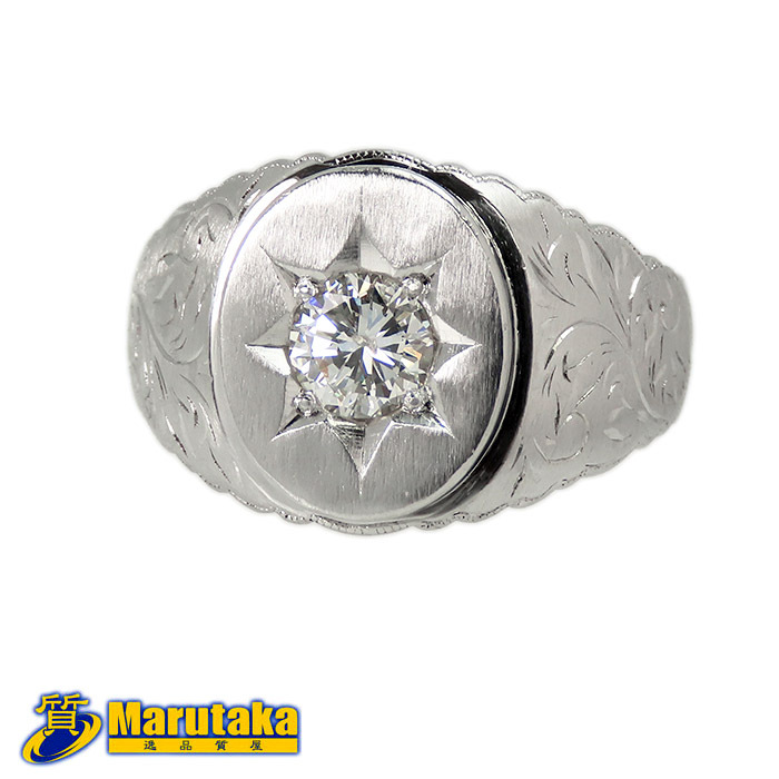 > 【Pt850 ダイヤモンド メンズ リング】プラチナ 印台 0.56ct ダイヤ 指輪 19号 約21.3g 宝石 ジュエリー 男性 後光留め 定番 人気 中古