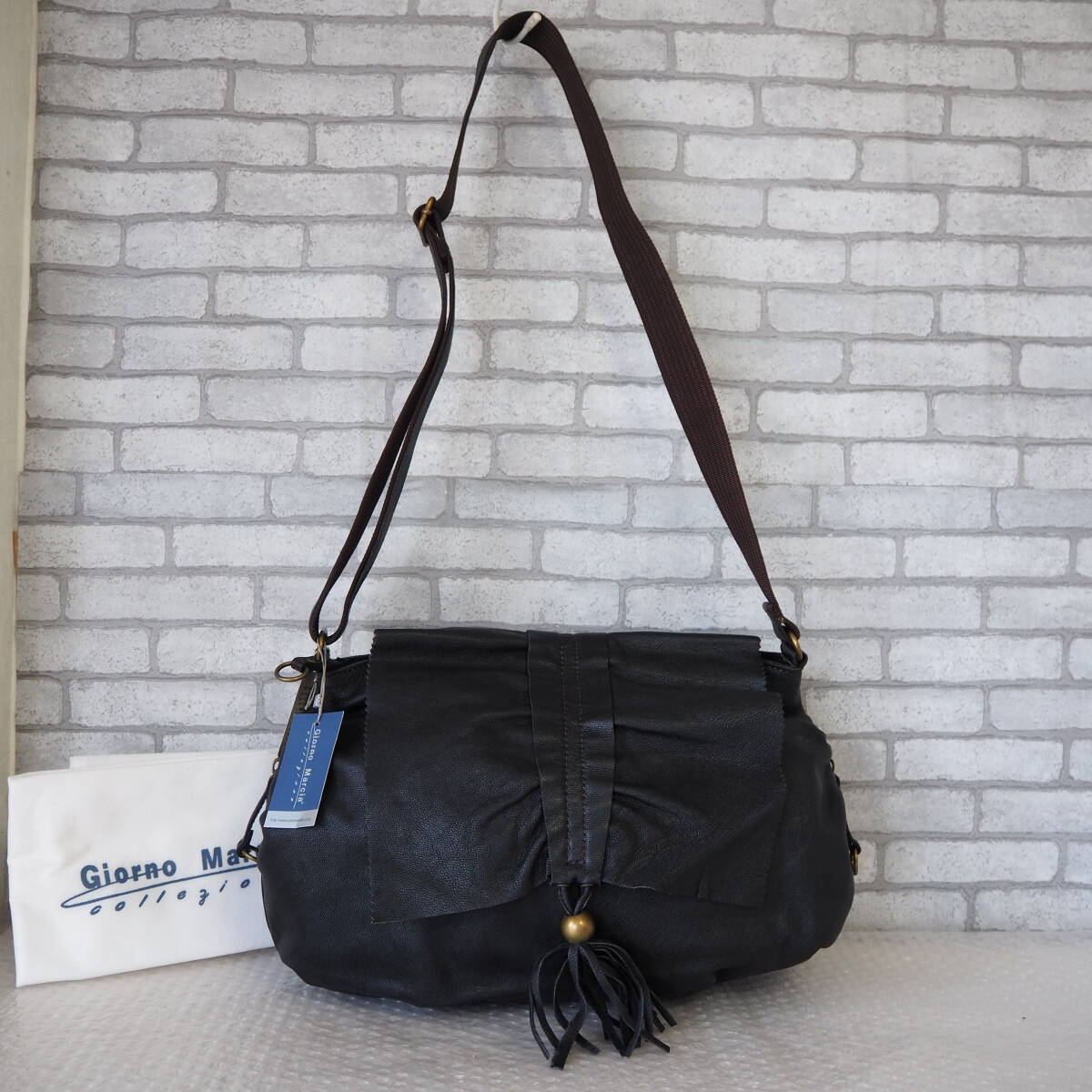 - ◆未使用品*Giorno Marcia*ゴート*山羊*ヤギ*レザー*ショルダーバッグ*黒◆