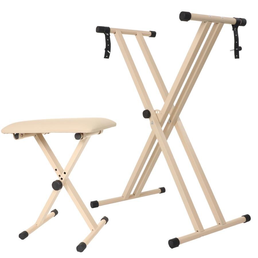 - キーボードスタンド x型 折りたたみ ピアノ 電子ピアノ 88鍵盤 61鍵盤 キーボードベンチ ピアノ イス 椅子 ベージュ