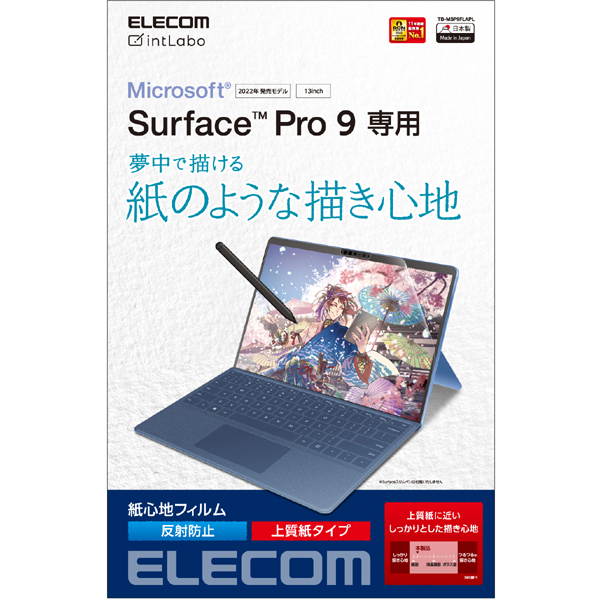 > Surface Pro9用液晶保護フィルム 紙心地/反射防止/上質紙タイプ 上質紙に鉛筆で描いた時の触感を実現: TB-MSP9FLAPL