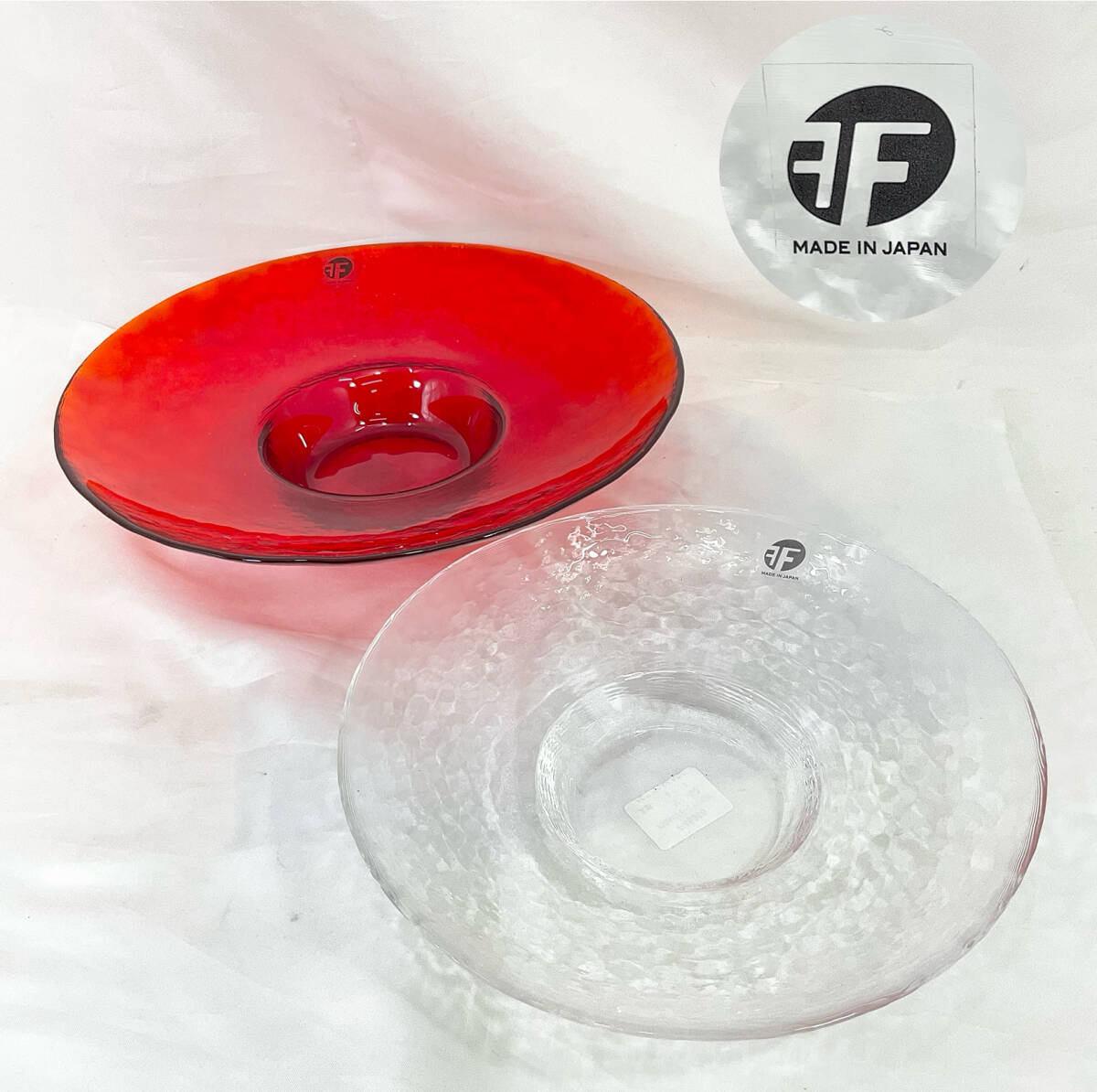 > 【未使用】ガラスプレート アラカルトプレート 日本製 レッド クリア ガラス 大皿 盛り皿 ガラス食器 C115