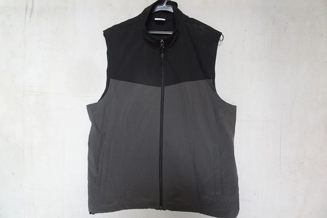 > FIRST DOWN/ベスト/スリーブレスジャンパー/ナイロン系ポリエステル素材/前ジップアップ/ツートーン/黒/ブラック/グレー/Lサイズ(8/29R7)