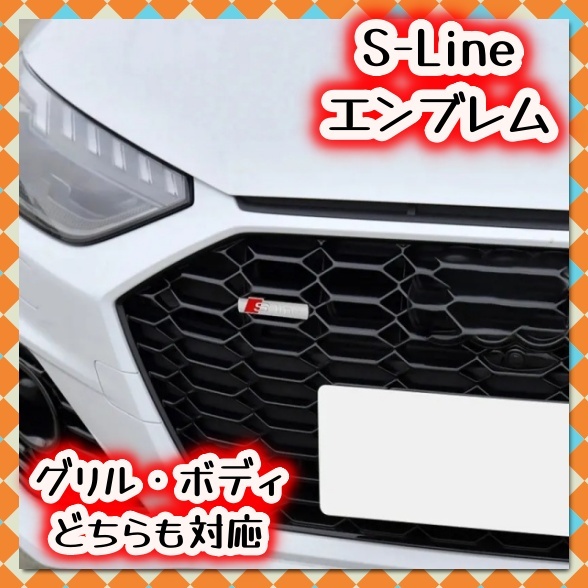 > AUDI アウディ S-Line Sライン グリルエンブレム フェンダーバッジ フロントグリルバッジ プレート 外装 3D 立体 ボディ リア 汎用