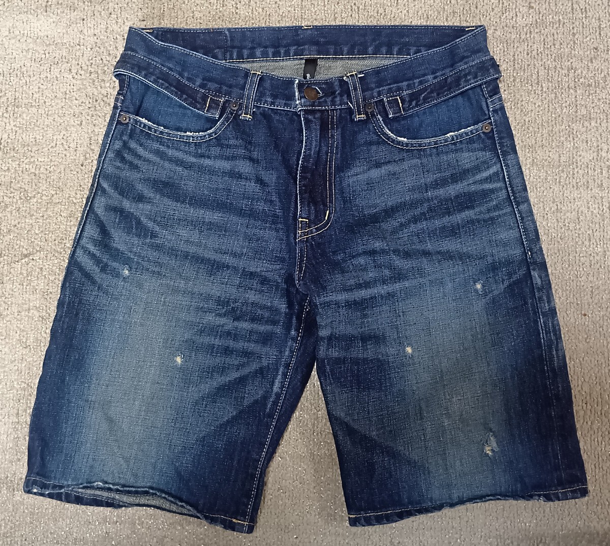 > ◎超美品◎雰囲気抜群◎glamb グラムビンテージダメージUSED加工セルビッジデニムショーツ size 2(85cm) 日本製 ユニセックス 男女兼用