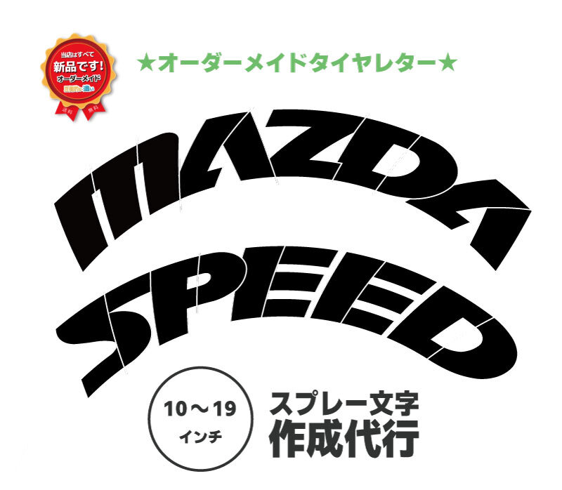 「MAZDA RACING でタイヤサイズが16インチで、文字高さ4cmで作成願います。。」 等