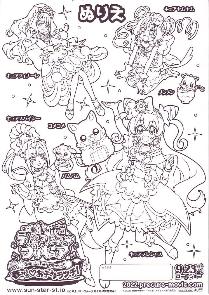 - 「デリシャスパーティ プリキュア 夢みるお子さまランチ!」の映画チラシ(塗り絵バージョン)です