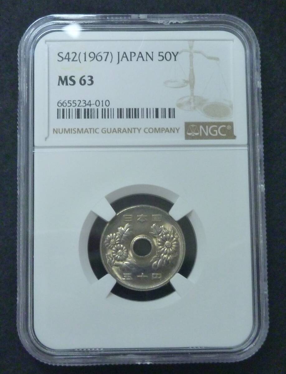 - ☆★50円白銅貨 昭和42年 NGC MS63★☆