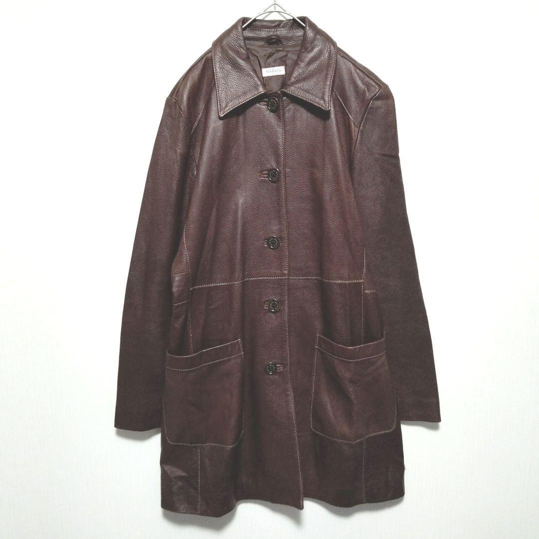 - マックスアンドコー MAX&Co. ラムレザー ロングコート シボ革 42サイズ