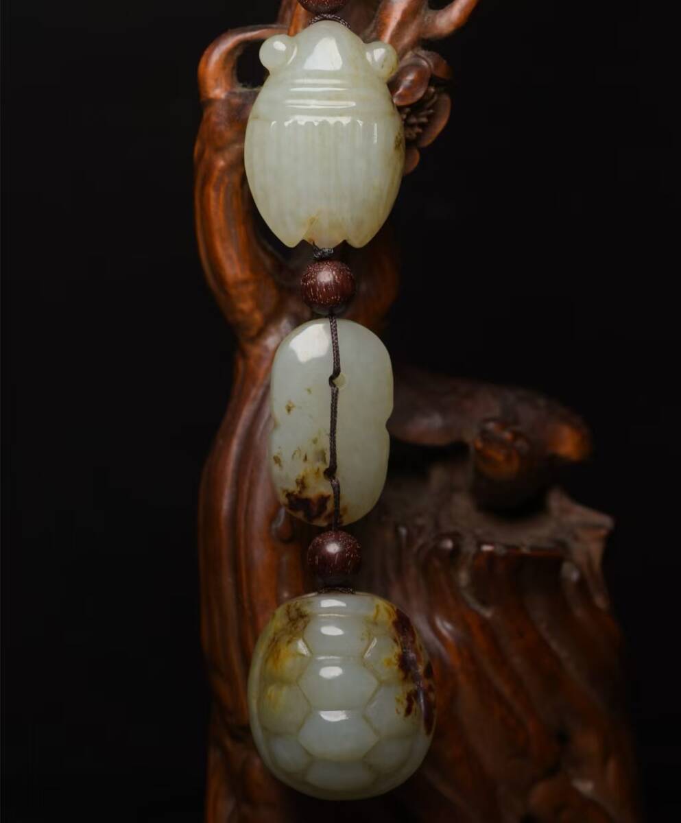 - 和田玉 老玉 秘藏 清代 和田玉金セミ亀の甲羅 唐物 古玉彫 天然石 稀少珍品 古美術 古賞物 古置物 旧蔵 901