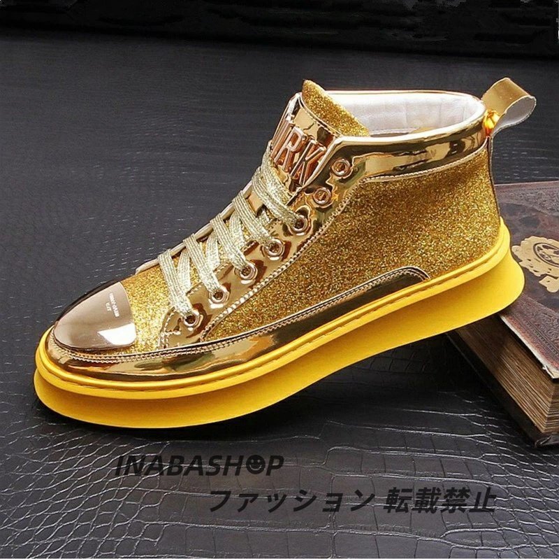- シークレットブーツ スニーカー ミドルカット ハイカット キラキラ 舞台 レースアップ オシャレ メンズ 春 秋 オールシーズン24.5cm-26.5cm