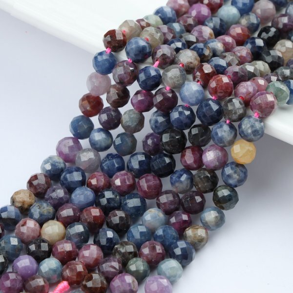 - 天然ルビー サファイア ファセットビーズ、4-6mm、38cm /ストランド、鑑別付き、残り時間4日までに最初に入札すると開始価格で購入可能 Pr