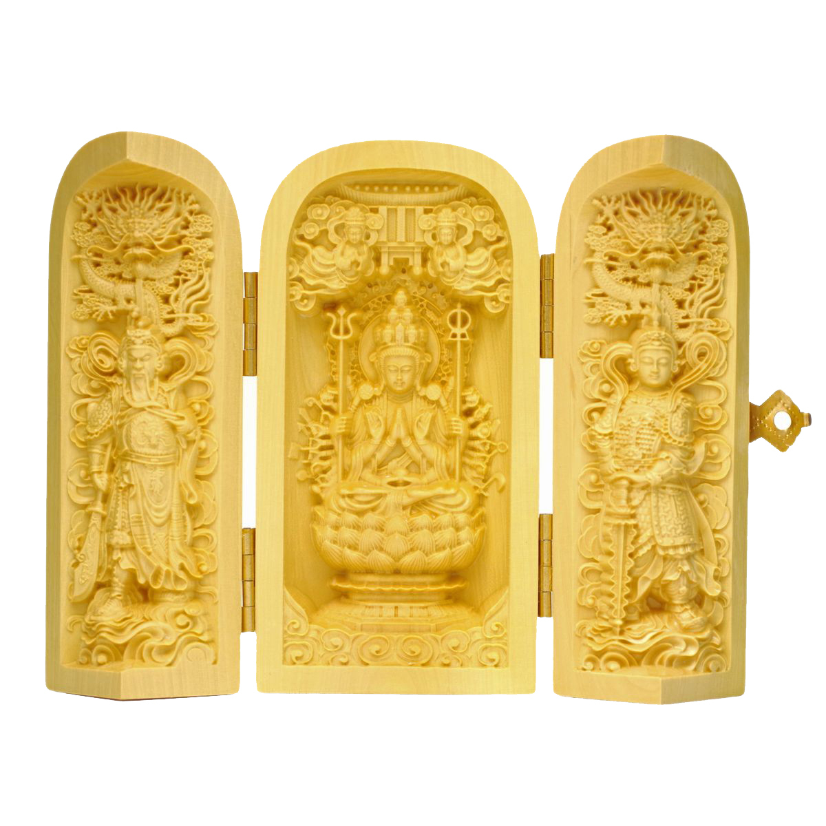 - 【新品】 千手観音菩薩 天然木製(柘植ツゲ) 約10cm 武財神 韋駄天 木彫仏像 彫刻 三開仏