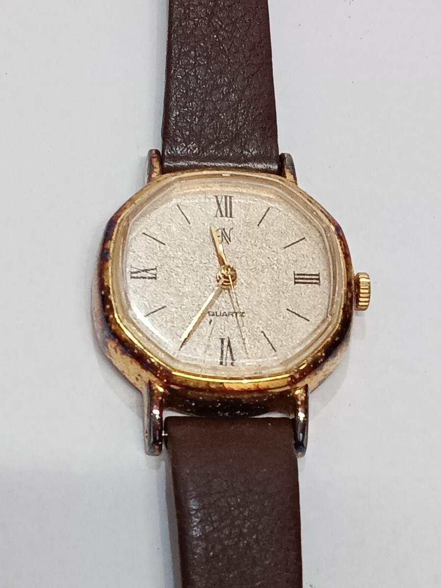 - NOEVIR レディース レザーベルト 腕時計 ブラウン Y481-7380 クォーツ ブラウン 劣化あり ノエビア 中古 電池切れの為動作未確認