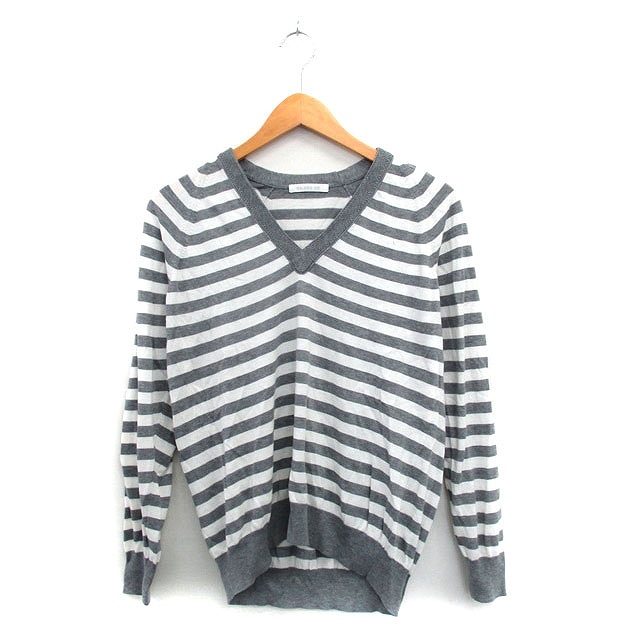 - ギャルリーヴィー GALERIE VIE トゥモローランド カットソー Tシャツ 長袖 Vネック コットン ボーダー 1 グレー 灰 /KT2 レディース