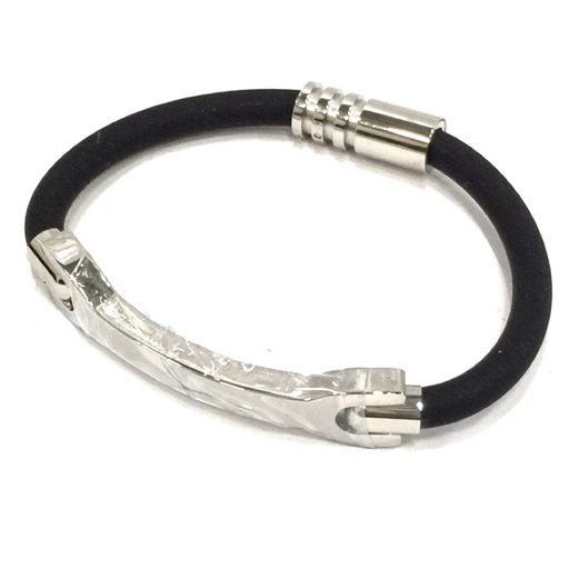 > ブランド不明 静電気除去 シリコン ブレスレット 腕周り約19㎝ ブラック×シルバーカラー アクセサリー 現状品