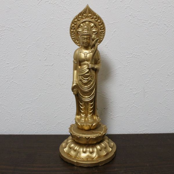 - 仏具屋さんからの買取品 金属製の綺麗な金色の観音菩薩像 ブロンズ 銅仏像 n302