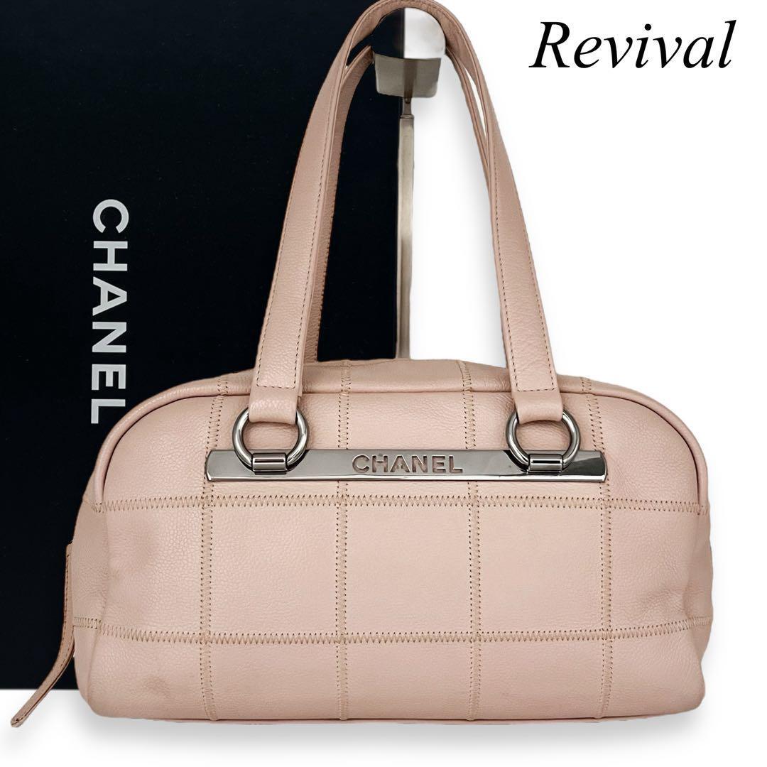 - 【美品】シャネル チョコバー キャビアスキン トートバッグ ピンク 532