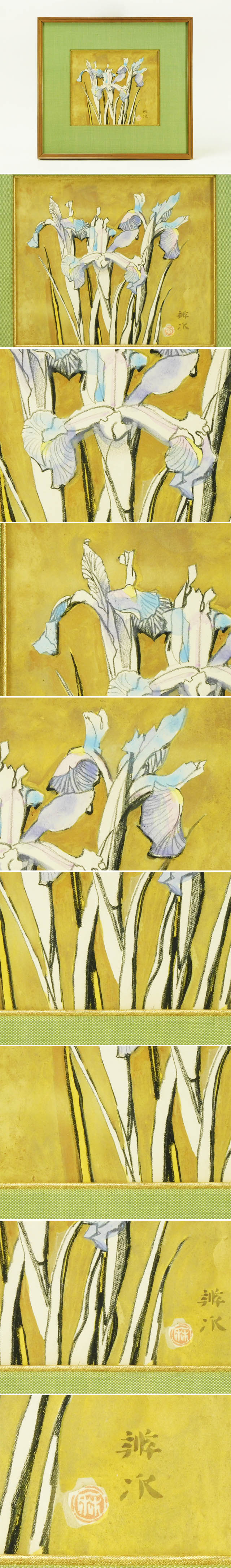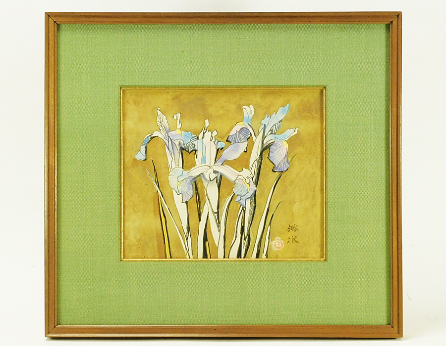 - 麻田辨自(麻田弁自)あやめ 3号 日本画 紙本 額装 専用タトウ 師西村五雲 文部大臣賞 日本芸術院賞 s25080503