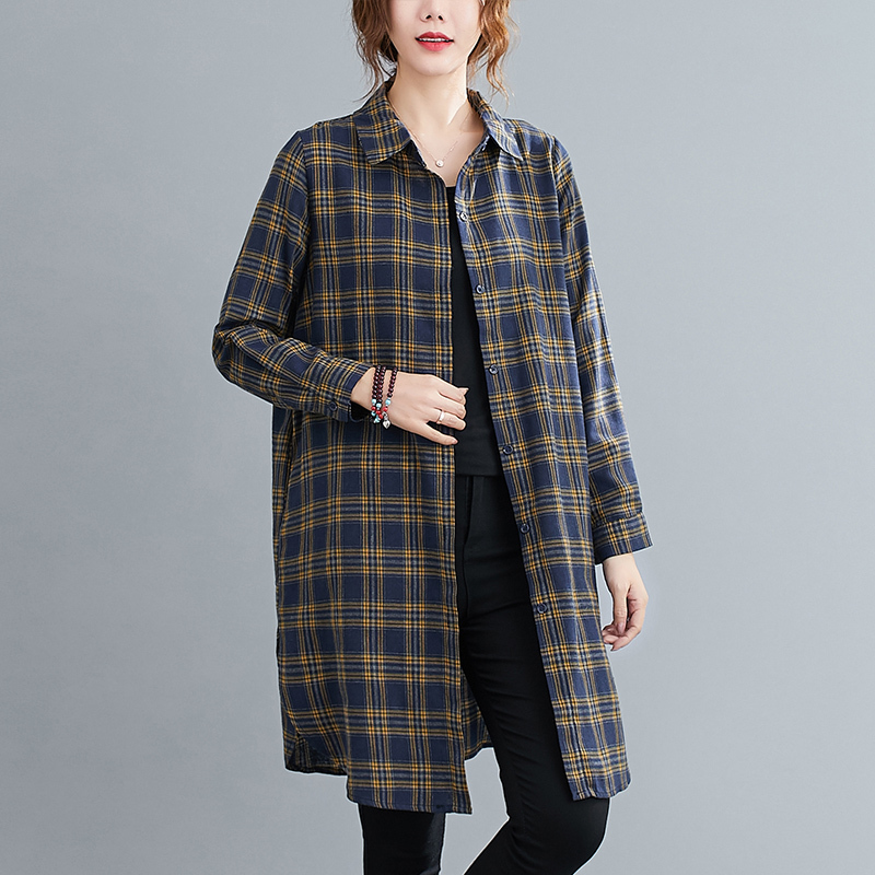 - 新入荷*カジュアル ロングシャツ 大きいサイズ チュニック 長袖 レディース アウター チェック柄 着やせ ゆったり 通勤 きれいめ