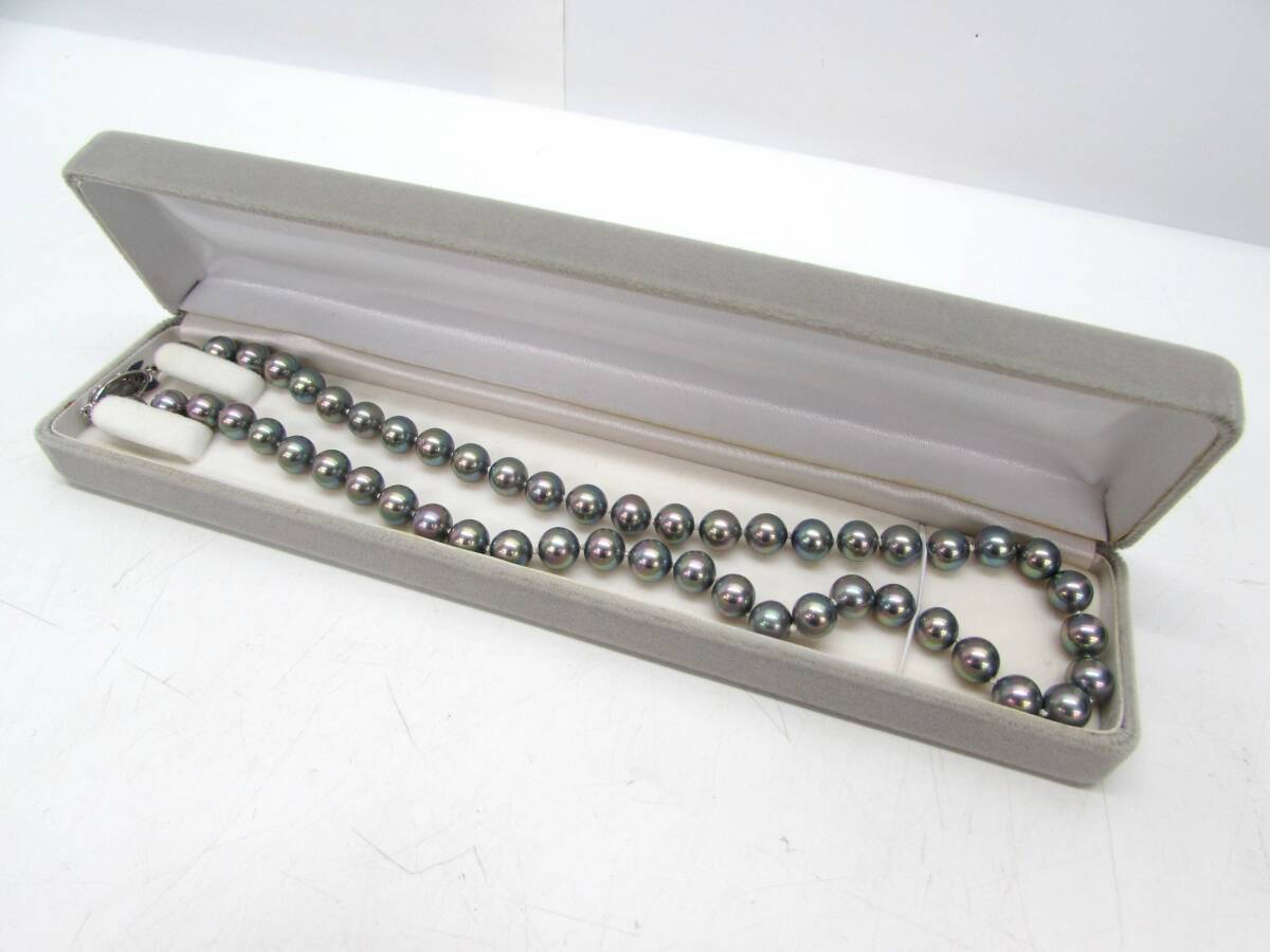 > フェイクパール イミテーションパール 1連 ネックレス 黒蝶貝風 SILVER刻印 レディース アクセサリー 服飾小物 ケース付き ※難あり