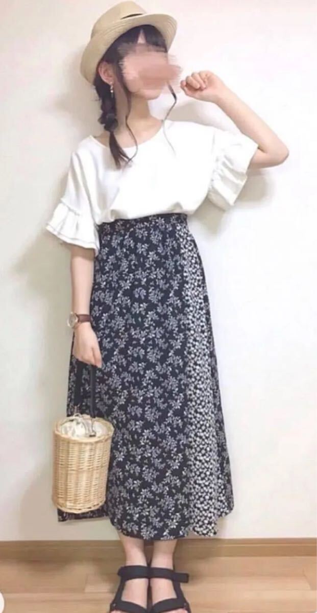 - *美品 GU 花柄切り替えデザイン ロングスカート M♪ブラック系