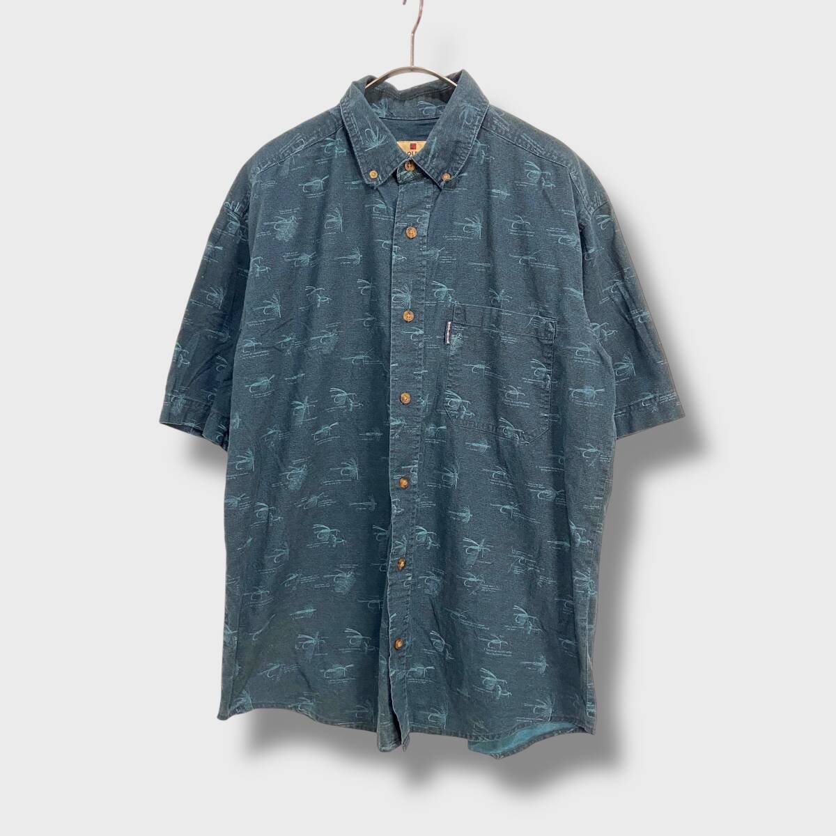 - 送料無料☆Woolrich☆ウールリッチ☆総柄半袖シャツ☆ルアー柄☆柄シャツ☆ボタンダウンシャツ☆ネイビー☆M☆H25M