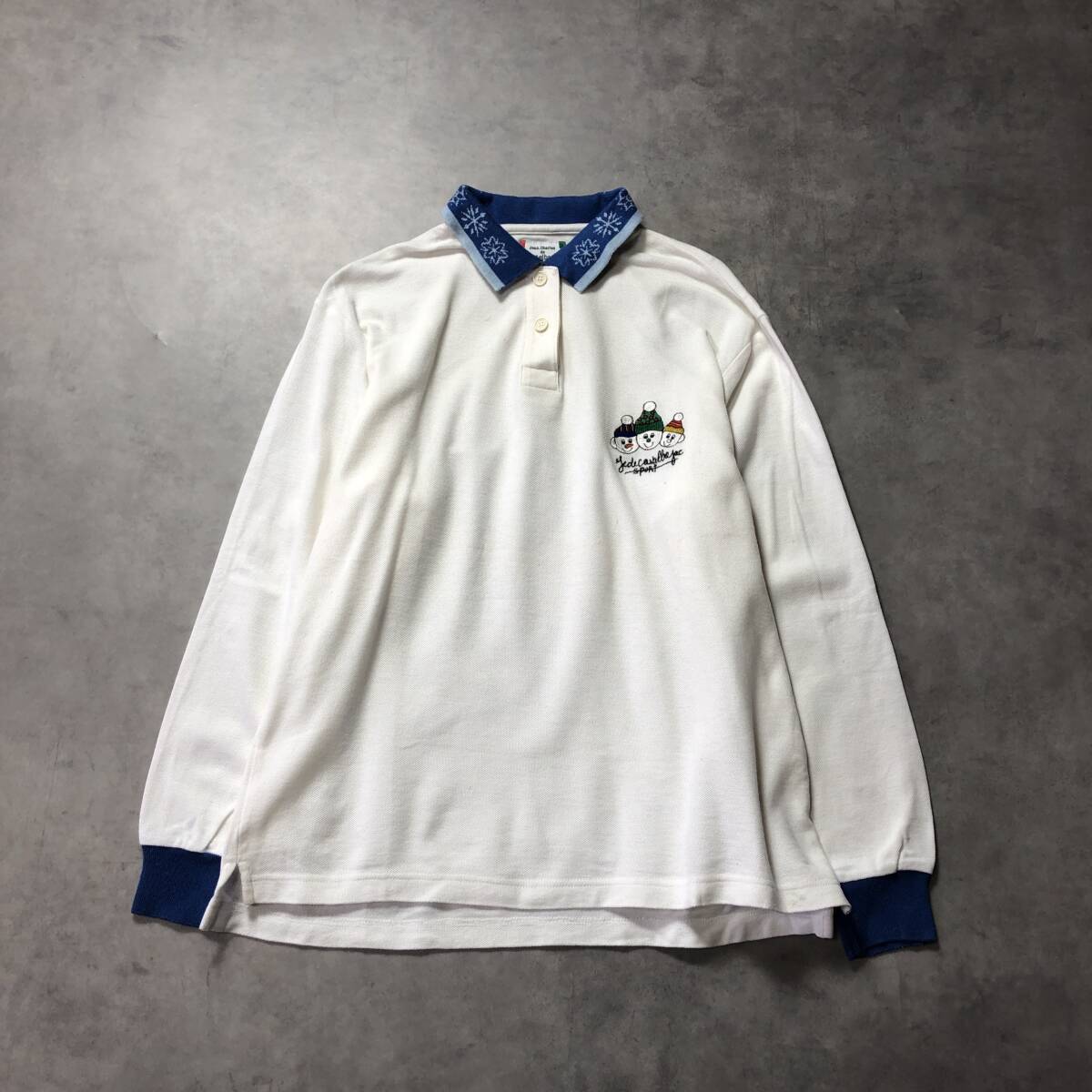 - WH062●CASTELBAJAC SPORT :刺長袖ポロシャツ ●2● 白/青 カステルバジャックスポーツ