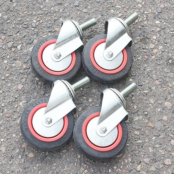- 新潟発】未使用 ハンマーキャスター 100×32 4個セット 台車 DIY 機器 家具 運搬 移動 運搬台車 作業台 取付 倉庫 棚 キャスター 工具 中古