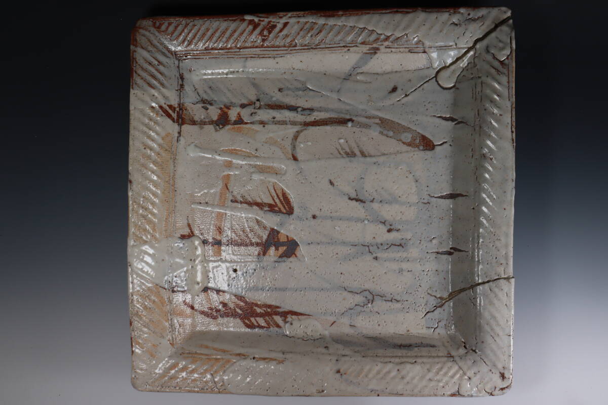 - 蔵出し品 古志野 桃山時代 絵志野 大角皿 小山富士夫識 A646