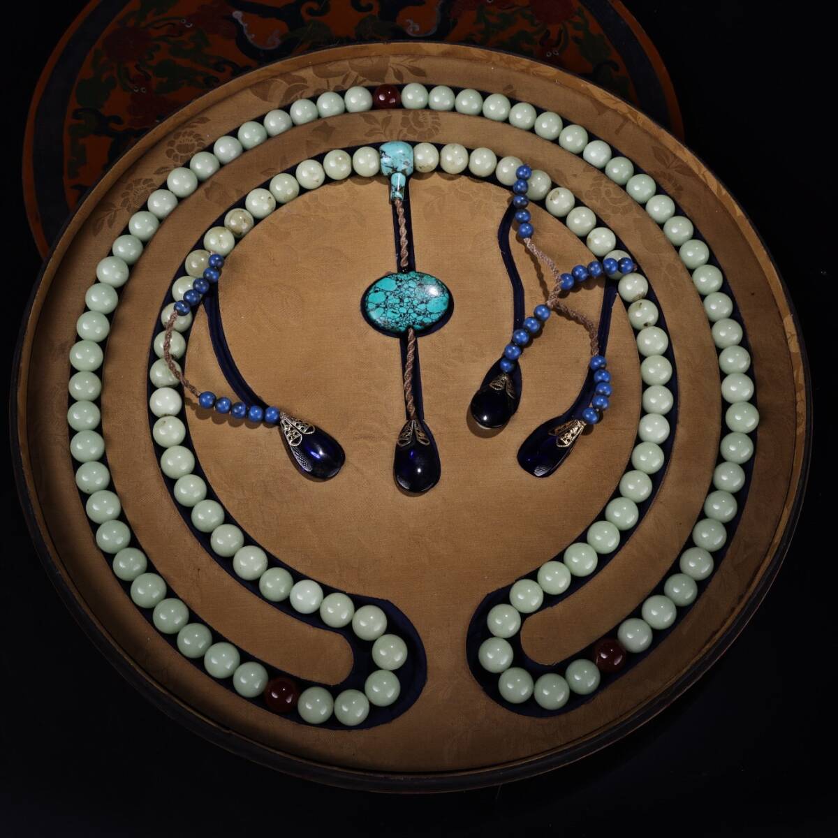 - 【超珍館蔵】夜光石細密彫 朝珠 彩繪 神獣紋 漆器箱付 根付 裝身具 古賞物 古董品 古美術品 時代物 旧家蔵出 稀少珍蔵品