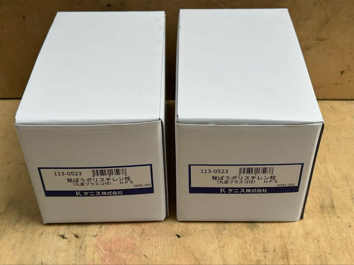 - 中古 未使用品 発泡ポリスチレン栓 (丸底フラスコ付) 2点セット