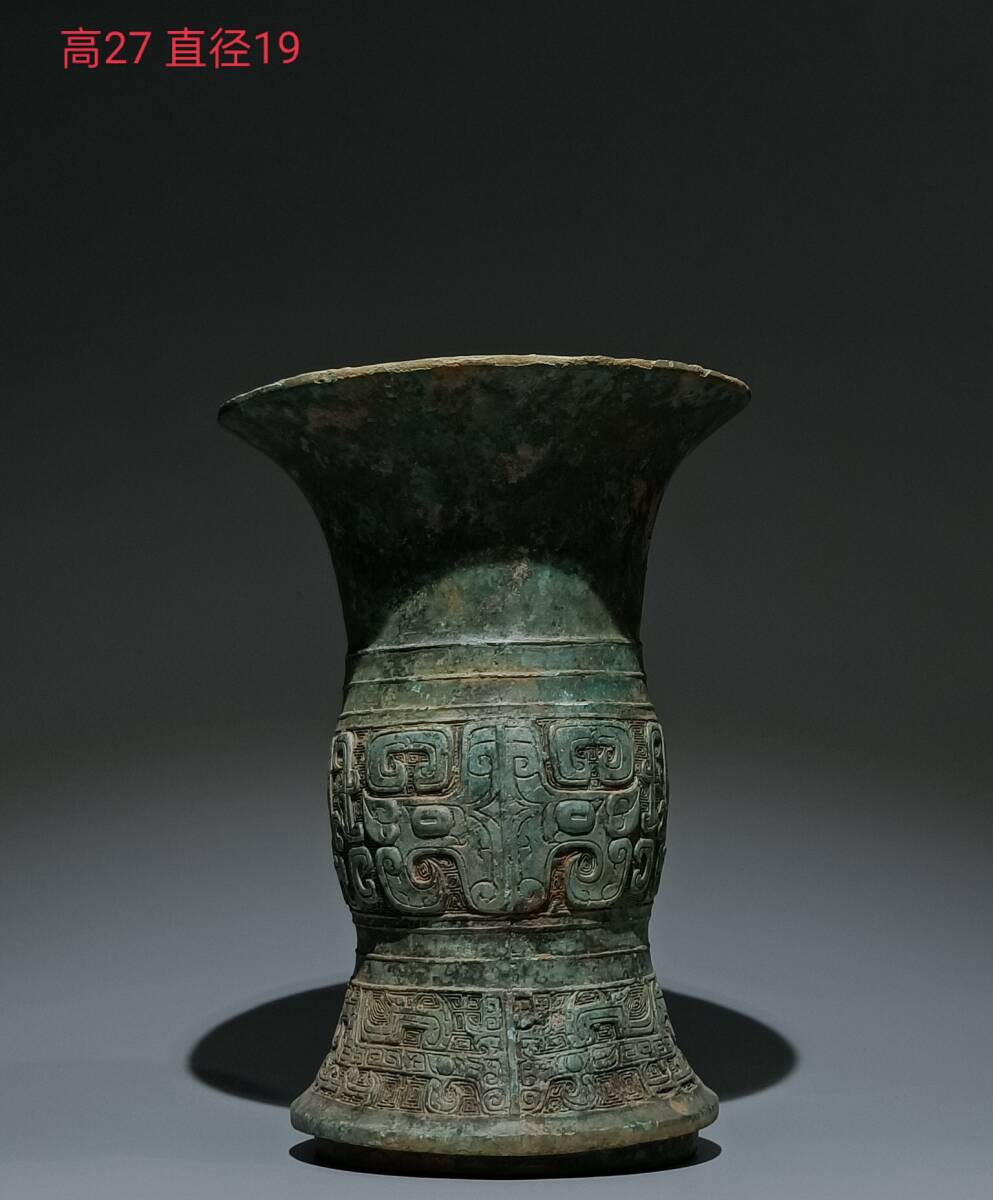 - 【超珍館蔵】商 青銅製 獣面紋酒尊 青銅器 置物 賞物 古賞物 古董品 古美術品 時代物 旧家蔵出 稀少珍蔵品