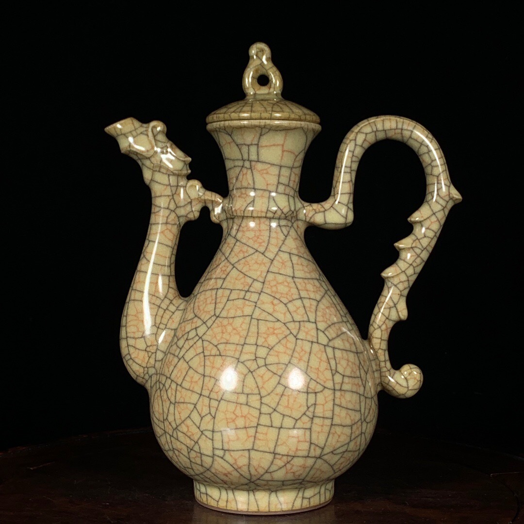 - 蔵友旧蔵出 宋 哥窯 冰裂紋 龍首執壺 稀少珍品 貴重品 古陶瓷品 置物 古賞物 中国古玩 中国古美術品