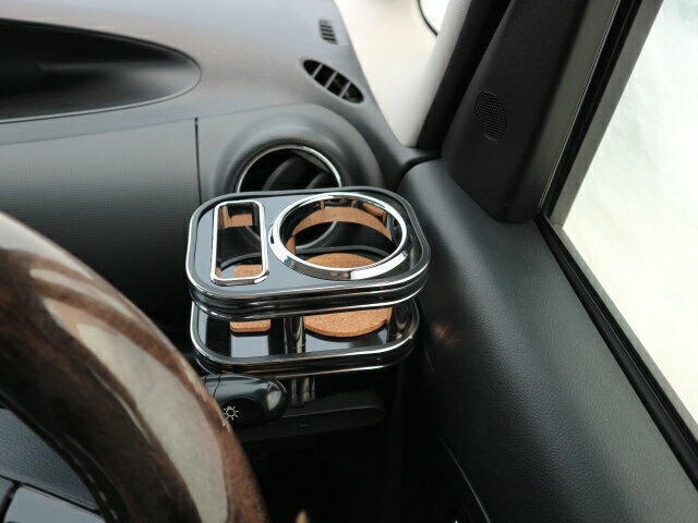 > 【限定品】L375/385タント(07/12~) 純正ドリンク用カップホルダー 運転席側 ブラック BKxフルメッキ