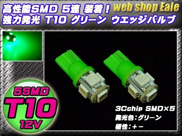 - T10 LEDバルブ グリーン 緑 ウェッジ球 3chip 5050SMD5連 ウエッジバルブ 2個セット A-28