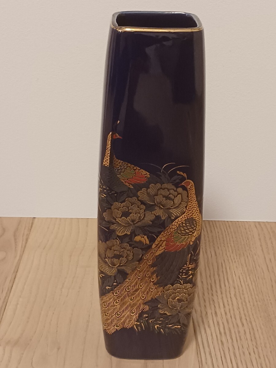 - 花瓶 高野窯 瑠璃色 金孔雀 梅 花入 インテリア