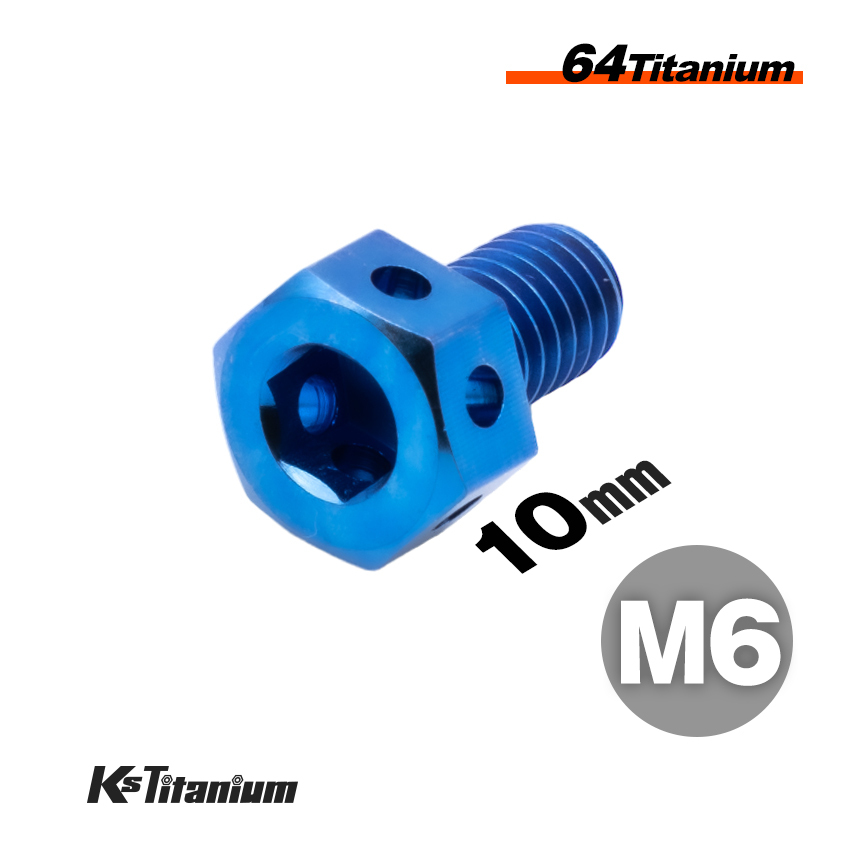 - チタンボルト M6×10 P1.0 ブルー 64チタン ワイヤーロック 六角ヘッドボルト オイルドレンボルト ワイヤリング フロントフォーク等に
