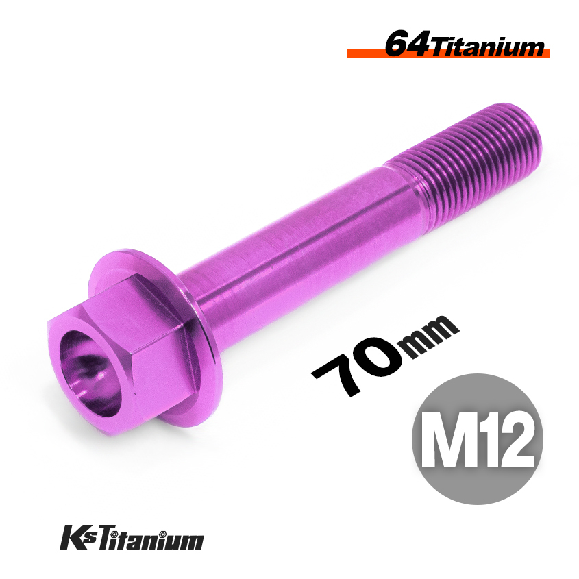 > チタンボルト M12×70 P1.25 パープル 1本売り 64チタン フランジボルト スレッド 25mm バイク レストア パーツ
