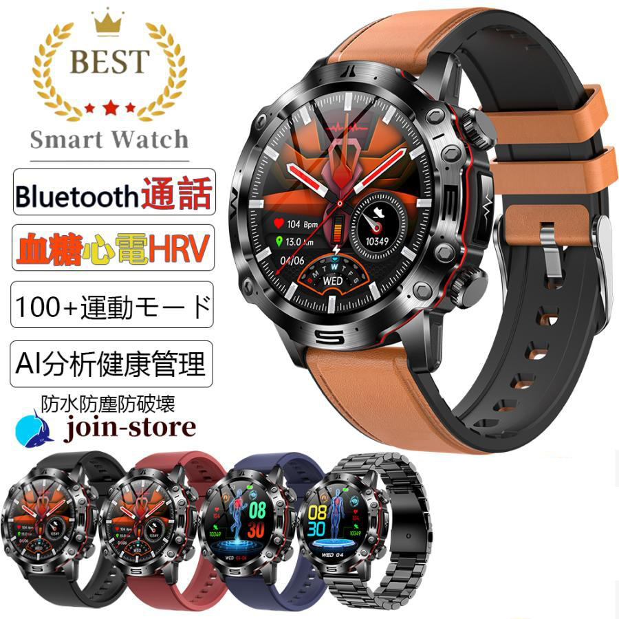 - スマートウォッチ 日本製センサー 通話機能 血糖値 ECG心電 血圧測定 心拍数 歩数計 体温測定 多運動モード IP68防水着信通知 日本語