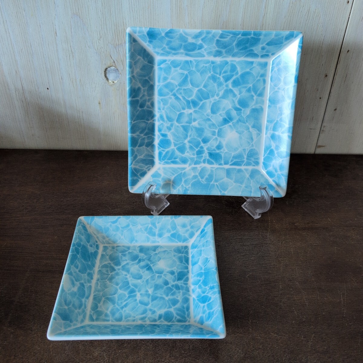 - TAITU タイトゥ スクエアプレート 大小 2枚セット エミリオ ベルガミン イタリア 水面柄 角皿 ブルー 水色