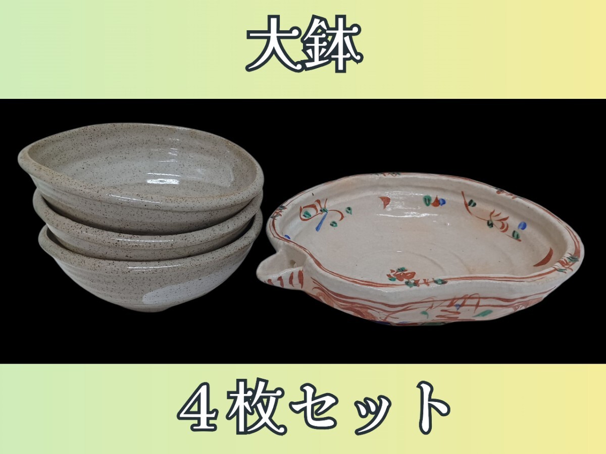 - 岩【4枚セット】赤絵小花 片口鉢 鉢 大鉢 和食器 皿 和食 料亭 旅館 割烹 懐石 居酒屋 飲食店 和食器 業務用 250902(N-1-3
