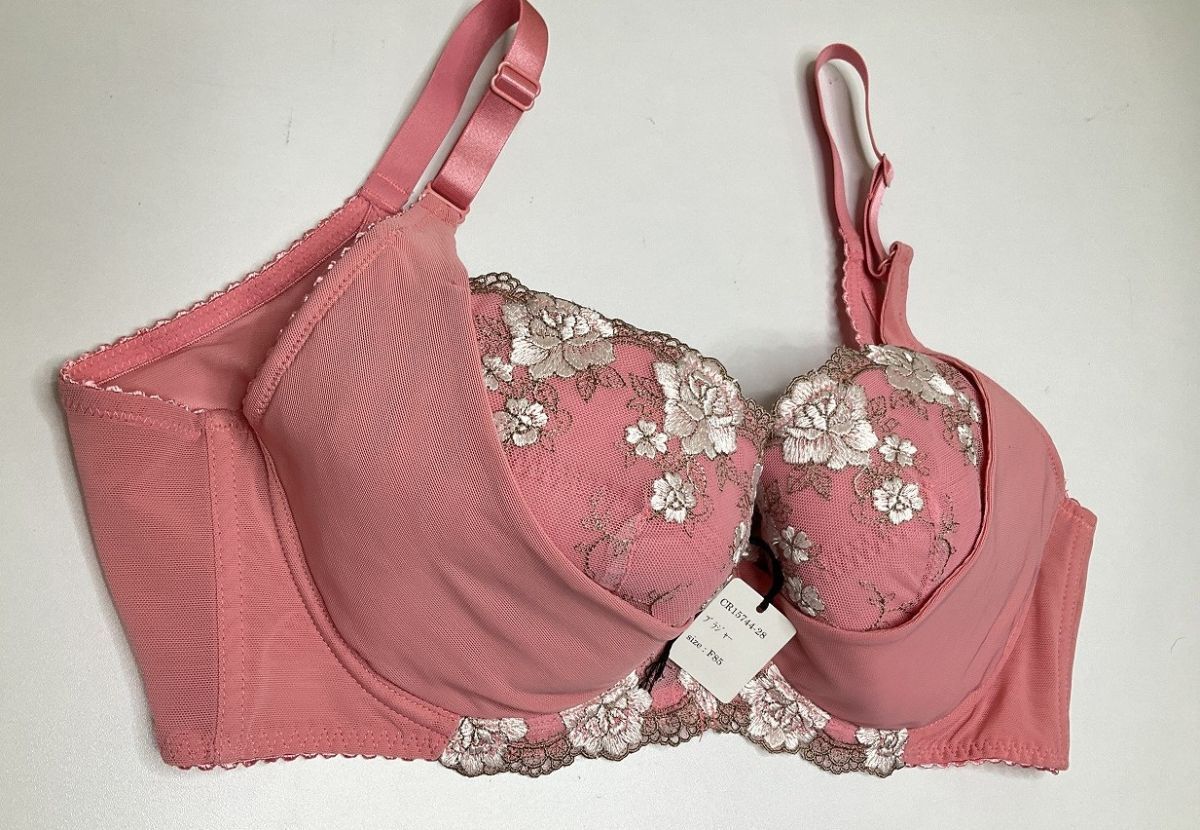 - CR15744-28 IB⑦【特価】新品 大きい ブラジャー2枚組 F85 ピンク 花柄 レース 脇高 刺しゅう ストレッチ おしゃれ レディース