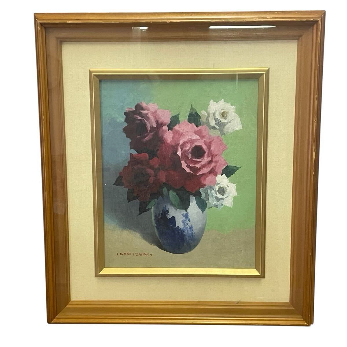 - 【中古】模写 額装入り 絵画 油絵 今泉一郎 薔薇 バラの花 額装サイズ横約39cm×縦約44cm×厚さ約6cm 長期保管品◆L91-022
