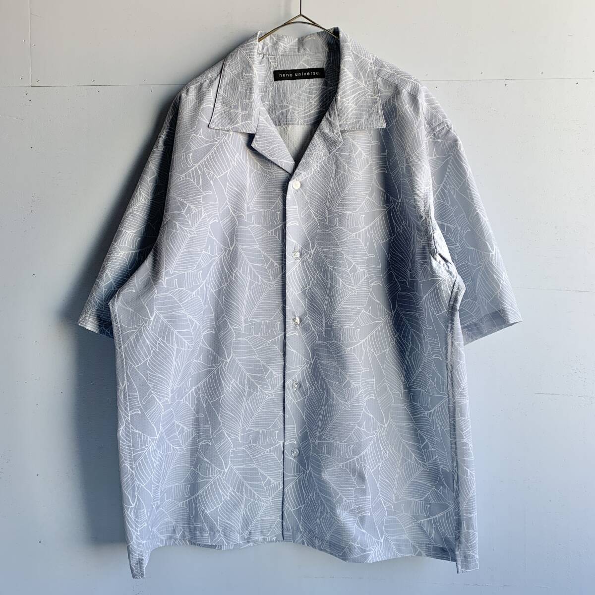 > ☆nano universe ナノユニバース ポリサッカー 総柄 ボタニカル柄 半袖オープンカラーシャツ 水色系 sizeM【レターパックライト郵送可】12