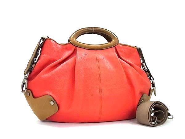 > 1円 MARNI マルニ バルーン レザー 2WAY ショルダー トート ハンドバッグ 斜め掛け 肩掛け レディース オレンジ系 FU0431