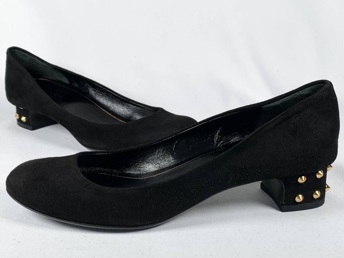 - 【正規】極美品 グッチ GUCCI 297198 ゴールドスタッズ スエード レザー パンプス ヒール ドレス ビジネス シューズ 革靴 レディース 36 黒