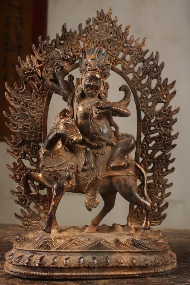 - 明代風 古銅泥金 銅器 吉祥天母 仏母 仏像 佛像 宗教密教 居家供奉 仏教古美術 極細工 骨董 旧家蔵出し 唐物 中国古玩 華夏品 古美術品