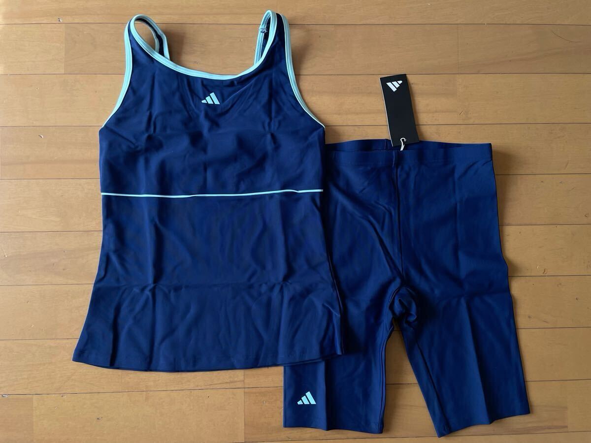 - 新品未使用 送料込み! adidasアディダス 160 丈夫で快適!! セパレート スクール水着 タンキニ ネイビー 紺 ガールズ ジュニア 即決