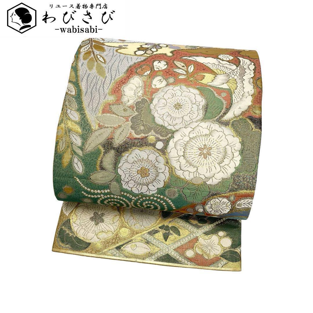 - 袋帯 二面リバーシブル 辻が花 鳥模様 牡丹 菊 季節の花模様 O-3822