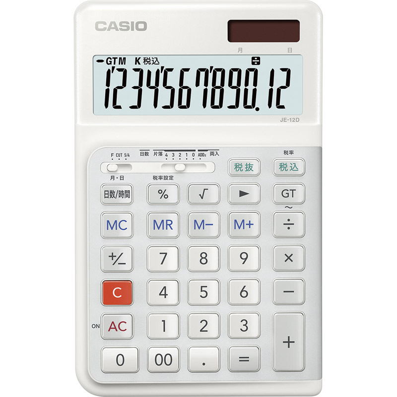 - カシオ 人間工学電卓 右手用 ホワイト JE-12D-WE-N 【単品】
